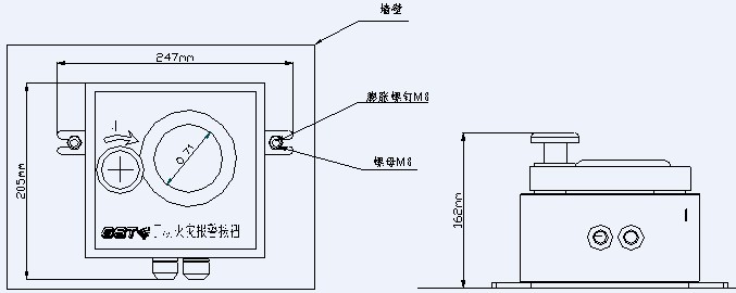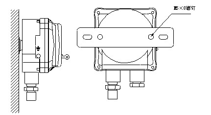 LZ10002型防雨罩采用壁掛式安裝,防護(hù)等級(jí)IP65,其外型尺寸及安裝示意圖如圖所示